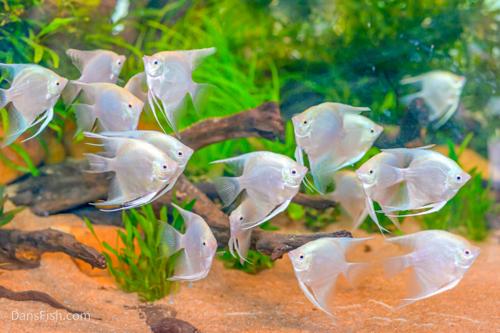Angelfish are grazers which will spend hours slowly perusing hardscape and/or plants for morsels of food. They are true omnivores which will readily eat almost any dry, frozen, or live food offered.